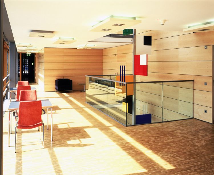 Seniorenhaus der Celitinnen, Düren · 60 Pflegeplätze · Kleiner, vom Stift genutzter Klosterbereich | Planung: JSWD Architekten, Köln | Fertigstellung: 2005 | Unsere Leistungen: Komplette Wandvertäfelung der zentralen Erschließungsgalerie · Leuchtkörper- und Akustik-Elemente an den Decken aller Gemeinschaftsbereiche · Faltwand mit integrierten Schrank-Elementen im Mehrzwecksaal