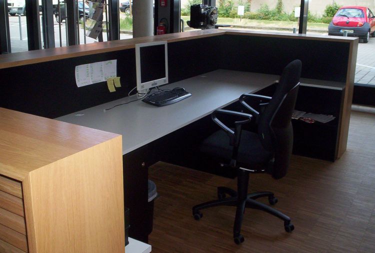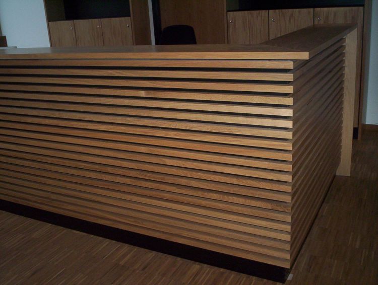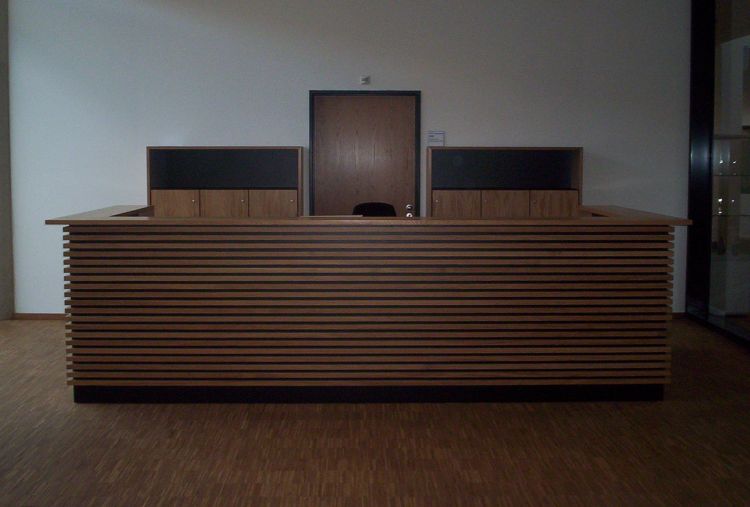 WZL - Werkzeugmaschinenlabor · RWTH Aachen | Planung: gmp-Architekten, Aachen | Fertigstellung: August 2005 | Unsere Leistung: Produktion und Montage der Empfangstheke in Eiche-Massivholz bzw. Echtholz-Furnier